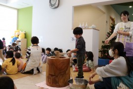 旭川おおぞら認定こども園 おもちつき会 2025年12月9日(火) 今日はおもちつき会がありました!保育者から、もち米のお話を聞いた後はおもちつきの歌を歌って、餅つきを楽しみました!みんな力いっぱいお餅をついていました! もどる