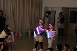 旭川おおぞら認定こども園 クリスマス会 2025年12月24日(水) 今日は、クリスマス会がありました!初めにばら組さんによる、ハンドベル『きのしこの夜』の演奏に合わせてキャンドルサービスが行われました!キラキラした光や演奏に「きれい」、「たのしい」と喜んでいました!サンタさんにプレゼントをもらえてニコニコな子どもたちでした♪ もどる
