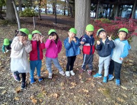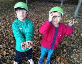 北の散歩道の築山までお散歩に行き、どんぐり拾いを楽しみました。