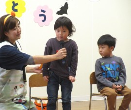 北星おおぞら認定こども園 10月お誕生会 2025年10月22日(水) 今日は10月生まれさんのお誕生会がありました🎂先月のお誕生会に参加できなかった子も合わせて、3歳未満児の会で3人・3歳以上児の会で5人がみんなにお祝いをしてもらいましたよ✨職員からの出し物は『ハロウィン』のスケッチブックシアターとスケッチブッククイズでした☺会食は、バターロール、照り焼きチキン、コールスローサラダ、コンソメスープ、バナナでした。おやつは、おばけドーナッツでしたよ🍩 もどる