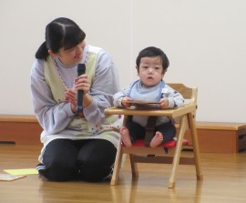 北星おおぞら認定こども園 11月お誕生会 2025年11月14日(金) 今日は11月生まれさんのお誕生会がありました🎂3歳未満児の会で2人・3歳以上児の会で6人がみんなにお祝いをしてもらいましたよ✨出し物は、もも組さんが『きのこ』の曲に合わせてダンスを披露してくれました☺職員からは『やんちゃ怪獣どっかーん』のダンスでしたよ!会食は、チキンライス、鶏肉のマーマレード焼き、野菜添え、コンソメスープ、オレンジでした。 もどる