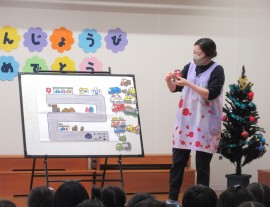 北星おおぞら認定こども園 12月お誕生会 2025年12月5日(金) 今日は12月生まれさんのお誕生会がありました🎂先月のお誕生会に参加できなかった子も合わせて、3歳未満児の会で6人・3歳以上児の会で8人がみんなにお祝いをしてもらいましたよ✨出し物は、みかん組さんがクリスマスソングの合わせて楽器演奏を披露してくれました☺職員からは、はたらくくるまのパネルシアターと3歳以上児さんと一緒にちょっとだけ体操をしましたよ☺会食は、旭川醤油ラーメン、シューマイ、バナナでした。 もどる