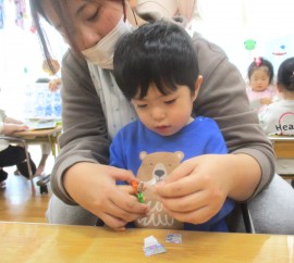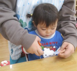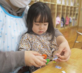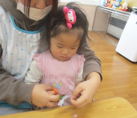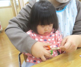 だるまの制作1日目は、はさみを使って紙を切りました。