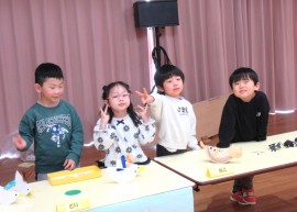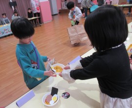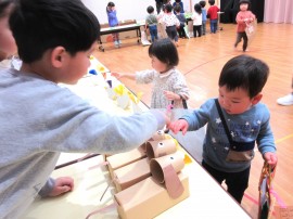 北星おおぞら認定こども園 お店屋さんごっこ 2026年1月30日(金) 今日はお店屋さんごっこがありました!お店は、ばなな組さんがペットショップ・ぶどう組がレストラン・めろん組さんがおもちゃ屋でした☆店員さんとお客さんを交代しながら行いましたよ。もも・みかん組さんも、好きな商品を選んで楽しんでいました☺ もどる