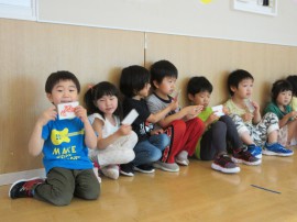 店番🏬の子は、お客さんが来るように大きな声で『いらっしゃいませ~❗❗』と声を掛け『どれが🥪いいですか❓』と聞いたり、売れると『ありがとうございました~❗❗』と