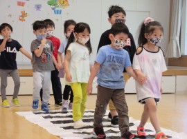 永山おおぞら認定こども園 交通安全教室 2022年5月10日(火) 今日は交通安全教室がありました❗交通ルールの⭕❌クイズ❓をして、みんなで横断歩道🚥の渡り方を確認しました😊みんな練習したとおり、ライトで照らす信号機🚦が青になると右・左・右・後ろと確認してから横断歩道🚥を上手に渡ることができました👏年長のひまわり組さんには、赤から青に変わる信号だけでなく、チカチカする青信号🚦の状況👀にもなりましたが、みんな各々で判断して正しく行動することができました👌 もどる