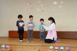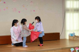 出し物ではもも組は手遊び、たんぽぽ組はお遊戯、さくら組はペープサート、すみれ組はハンドベルを発表しています✨ 出し物でばら組さんへ『ありがとう』の気持ちを伝えられましたよ💛