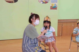 旭川おおぞら認定こども園 🍰7月お誕生会🍰 2021年7月30日(金) 今日は7月生まれのお誕生会がありました。今月は5人のお友だちが皆にお祝いしてもらいました!お誕生日のお友だちへの質問は「好きなテレビは?」と「好きなお友だちは?」などがありました。それぞれの質問に上手に答えてました😊今回の出し物はばら組さんによる「おべんとうバス」の劇でした。それぞれのお弁当の具の被り物をして上手に演じてましたよ! もどる