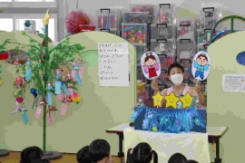 旭川おおぞら認定こども園 🎋七夕まつり🌟 2021年8月6日(金) 今日は七夕まつりがありました。まずはクラスごとの代表さんが、自分の作った短冊を発表しています!どうやって作ったか、お願い事もとても上手に発表できました😊そして七夕の話のペープサートを見た後は、全クラスで盆踊りをしました!皆で楽しく踊りました。最後に七夕に、ちなんだゲーム遊びも行いました。「頑張れー!!」と他のクラスのお友だちを応援してましたよ。大盛り上がりの七夕まつりでした。 もどる