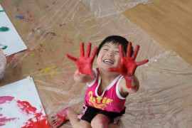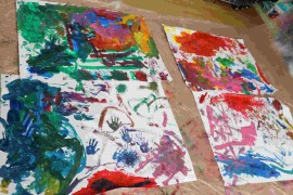旭川おおぞら認定こども園 🌸さくら組 クラスの様子🌸 2021年8月16日(月) 今日はボディペインティングをしました!大きい模造紙に様々な色の絵の具を筆や手足を使って塗りました。全身を使ってお友だちと楽しみましたよ😊 もどる