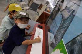 動く模型と骨・歯などがある所へ行き、「すごーい!」