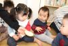 自分の番になると、杵を張り切って持ちペッタンペッタンする姿があり、周りで応援している子は「よいしょ~!!」と声を合わせて楽しんでいましたよ(^▽^)/