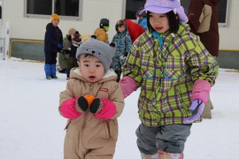 お兄さんお姉さんに誘導されながら楽しんでみかんを拾う姿がありましたよ♪