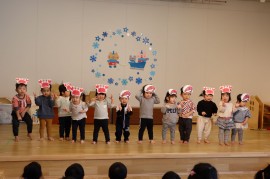 今月は、もも組さんから「エビカニクス」のお遊戯発表でした。