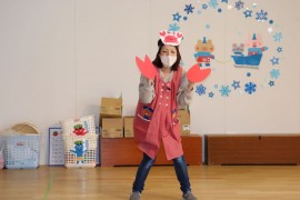 エビとカニになりきり、リズムに合わせて踊る姿はとても可愛らしく