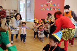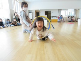 どのクラスも部屋に入ってきた瞬間「きゃー!!」と叫び声が聞こえ、泣いてしまう子や「鬼は外!!」と頑張って豆を投げる子がいましたよ。
