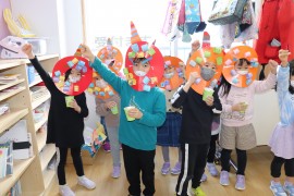 自分で作ったお面を被り自信満々に発表をすることが出来ていましたよ♪