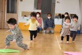ちゅうりっぷ・もも組はひし餅運び競争、