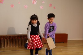 最後は、在園児が作ったプレゼントを渡して