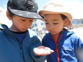 旭川おおぞら認定こども園 クラスの様子(すみれ組) 2023年5月19日(金) 桜が満開になった日にすみれ組のお友だちが「お花見をしたい!!」と言うことで近くの桜の木の下までお花見をしに行きました🌸写真も撮り「綺麗だね~」と桜を見て満足していました😊園庭も使えるようになり、遊具で遊ぶ事も出来ています。春に出てきた虫にも興味を持ち、じっくり見ている子もいました。外で遊ぶ事が多くなってくるので楽しもうね🌼 もどる