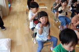 以上児クラスのお友だちだけで歯磨き練習を行いました。