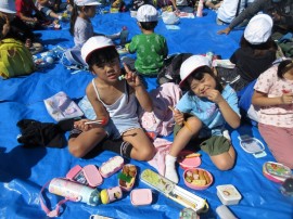 昼食の時間になり、家族の方が作ってくれたお弁当を