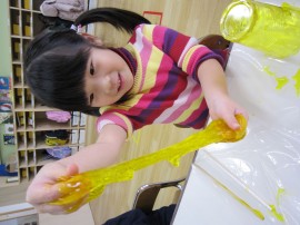 旭川おおぞら認定こども園 クラスの様子(すみれ組) 2023年11月30日(木) すみれ組のクラスの様子です。この日は、スライム遊びをしました。「ジュース遊びをしよう!」ということでコップにスライムの材料を入れ、まぜまぜ・・🍹完成した後は、ストローを差し、飲み真似をして楽しむ子ども達でした!手で感触を楽しむ子も沢山いましたよ😊 もどる