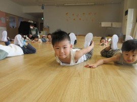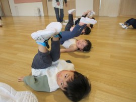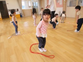 先生の話をしっかり聞いて、準備体操や縄跳びを使って身体を動かしましたよ!