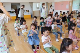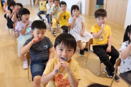 旭川おおぞら認定こども園 よい歯の教室 2024年6月4日(火) 今日はよい歯の教室でした。紙芝居で歯磨きをしないと、虫歯になってしまうことを勉強した後は、模型を使って歯磨きを練習しました!さくら・すみれ・ばら組は実際に歯ブラシを使って歯磨きをしました✨ もどる