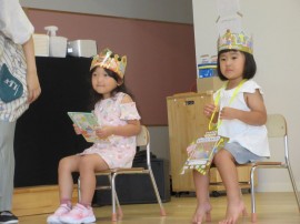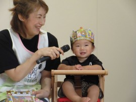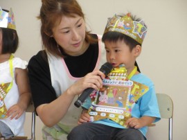 旭川おおぞら認定こども園 8月お誕生会 2024年8月23日(金) 今日は8月生まれのお友だちのお誕生会がありました🎂6人のお友だちの誕生月でした。保育者の出し物「ミラクルレンジ」では、ベルを「チーン」とお誕生日のお友だちが鳴らしてみると、色々な物が変身して、大盛り上がりでした!8月生まれのお友だち、お誕生日おめでとう! もどる