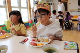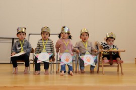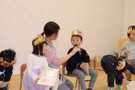 旭川おおぞら認定こども園 11月お誕生会 2024年11月30日(土) 今日は11月生まれのお友だちのお誕生会がありました🎂11人のお友だちの誕生月でした。質問に答えるインタビューにも上手に発表できていましたよ!保育者の出し物「どんないろがすき?」では、歌を歌いながら楽しんでいました!最後にはフルーツたっぷりのケーキが完成し、みんなで食べる真似をして大喜びでした!11月生まれのお友だち、お誕生日おめでとう! もどる