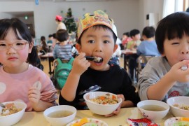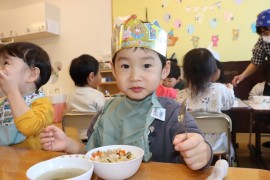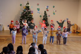 旭川おおぞら認定こども園 12月お誕生会 2024年12月13日(金) 今日は12月生まれのお友だちのお誕生会がありました🎂6人のお友だちの誕生月でした。保育者の出し物のマジックでは、はてなボックスからサンタさんや雪だるま、おばけが出てきて、驚く子どもたちでした!たんぽぽ組のお遊戯は、「いちごサンタクロース」を披露してくれました!はずかしがりながらも上手に踊っていて、とてもかわいらしかったです!12月生まれのお友だち、お誕生日おめでとう! もどる