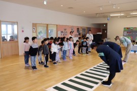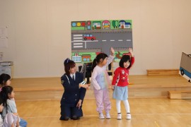 旭川おおぞら認定こども園 交通安全教室(巡回) 2024年11月21日(木) 今日は、交通安全教室がありました!パネルシアターで交通ルールを教えてくれました。リスさんも来てくれたので、どうすればいいのか一緒に考えることが出来ていましたよ。ばら組さんは、横断歩道を渡る練習をしました。しっかりとお話を聞いていたので、上手に渡ることが出来ていましたよ!! もどる