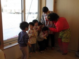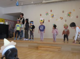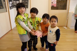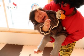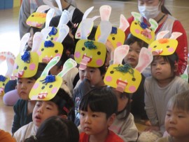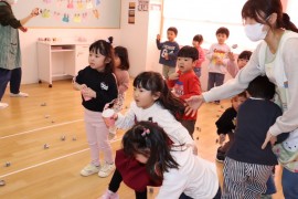 旭川おおぞら認定こども園 節分豆まき会 2025年2月3日(月) 今日は節分豆まき会がありました。朝から、ワクワクしていた子どもたち!保育者の節分についての紙芝居を見た後は、作品発表をしました。各クラスから1人ずつ代表さんが発表してくれました。緊張しながらも、頑張って発表してくれました。鬼退治では、泣いてしまった子もいましたが、頑張って「鬼は外 福は内」、新聞紙ボールを投げ退治しました!おわった後は、福の神が福を呼んでくれていました! もどる