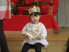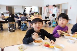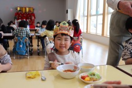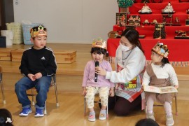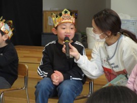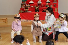 旭川おおぞら認定こども園 2月お誕生会 2025年2月21日(金) 今日は2月生まれのお友だちのお誕生会がありました🎂7人のお友だちの誕生月でした。質問に答えるインタビューにも上手に発表できていましたよ!みんなも聞きながら、「同じ物が好き」と言い、楽しんでいました!保育者の出し物「変身トンネル」では、食材がケーキになる出し物を見て、「ケーキおいしそう」と大盛り上がりでした!2月生まれのお友だち、お誕生日おめでとう! もどる