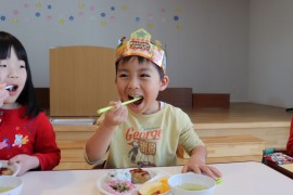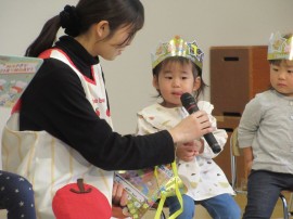 旭川おおぞら認定こども園 3月お誕生会 2025年3月7日(金) 今日は3月生まれのお友だちのお誕生会がありました。先生の名前が書かれたカードをお誕生児のお友だちが引き、質問に答えました。緊張しながら、頑張って教えてくれましたよ!保育者の出し物マジックでは、何も入っていない所からぬいぐるみが出てきたり、果物当てを楽しんでいましたよ!3月生まれのお友だち、お誕生日おめでとう! もどる