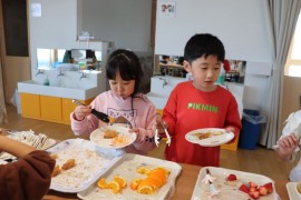 旭川おおぞら認定こども園 お別れ会 2025年3月11日(火) 今日はお別れ会がありました。はじめに、ばら組さんはステージに上がり、保育園での思い出を堂々と発表してくれました!「プールに入ったこと」、「お遊戯会で踊ったこと」とそれぞれ発表していましたよ!その後は、ばら組さんへの感謝の気持ちを込めて、もも組、さくら組、すみれ組さんが出し物を発表してくれました!ばら組さんからも、歌のお返しをしてくれました。最後は、在園児からプレゼントを渡しています。 もどる