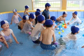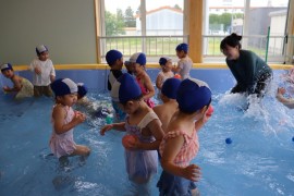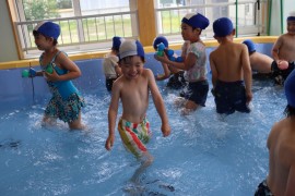旭川おおぞら認定こども園 プール開き 2025年6月16日(月) 今日はプール開きがありました。みんなでキッズ体操をした後に、プール遊びのお約束事を確認しました。すみれ・ばら組はその後に、プール遊びを友だちや保育者と一緒に楽しみました!!今年も沢山水遊びしようね~ もどる