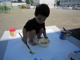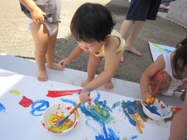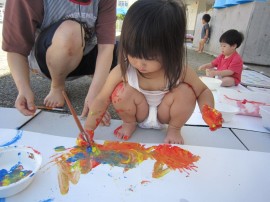 筆や手全体を使って、色の変化や感触を楽しみました!