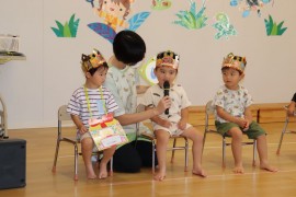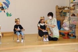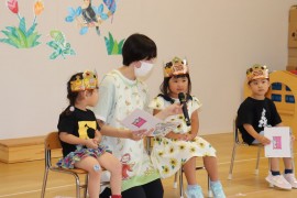 旭川おおぞら認定こども園 8月のお誕生会 2025年8月22日(金) 今日は8月のお誕生会でした👑今回の出し物はエプロンシアターの「大きなかぶ」でした!みんなで声を揃えて「どっこいしょっ」と言って楽しみました。8月のお誕生日のお友だちおめでとう!! もどる
