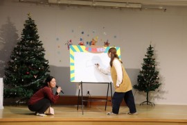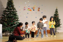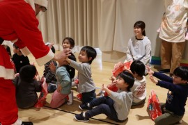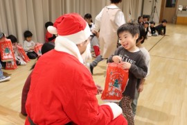 旭川おおぞら認定こども園 クリスマス会 2025年12月24日(水) 今日は、クリスマス会がありました!初めにばら組さんによる、ハンドベル『きのしこの夜』の演奏に合わせてキャンドルサービスが行われました!キラキラした光や演奏に「きれい」、「たのしい」と喜んでいました!サンタさんにプレゼントをもらえてニコニコな子どもたちでした♪ もどる