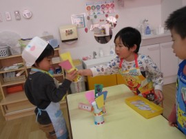旭川おおぞら認定こども園 お店やさんごっこ 2026年1月23日(金) 今日はお店屋さんごっこがありました!色々なお店をまわり、好きな品物を買って楽しみました✨とっても楽しんでお買い物をしていました!さくら・すみれ・ばら組の子はお店番も頑張っていました! もどる
