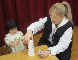 北星おおぞら認定こども園 もも組親子レク 2024年11月14日(木) 今日はもも組の親子レクがありました!お父さん・お母さんと一緒に紙コップロケットを作り、みんなで飛ばして遊びましたよ☺️お忙しい中参加して頂き、ありがとうございました。 もどる
