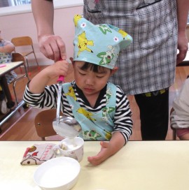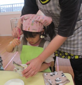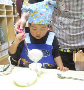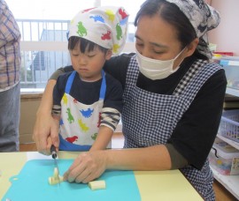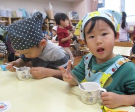北星おおぞら認定こども園 ばなな組クッキング 2024年11月22日(金) 今日は、ばなな組さんがフルーツヨーグルト作りをしました!包丁でバナナを切る、ヨーグルトをコップにおたまで入れる工程を先生と一緒に行いましたよ☆自分で切ったバナナがおいしいと喜んで食べていました☺ もどる