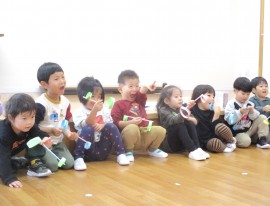 北星おおぞら認定こども園 ばなな組保育参観日 2024年12月5日(木) 今日はばなな組さんの保育参観日がありました。ストロー飛行機の制作や紅白カードめくり、リズム遊びなどの様子をお父さん・お母さんに見て頂きました☺お忙しい中見に来て頂き、ありがとうございました。みんなとてもうれしそうでしたね♪ もどる