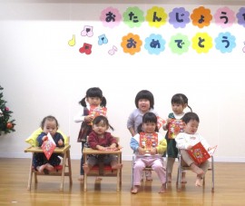 北星おおぞら認定こども園 12月のお誕生会 2024年12月6日(金) 今日は12月生まれさんのお誕生会がありました🎂先月のお誕生会に参加できなかった子も合わせて、3歳未満児の会で7人、3歳以上児の会で9人がみんなにお祝いをしてもらいました!出し物は、みかん組さんが『からだダンダン』の体操を披露してくれましたよ♪職員からは手品でした。会食は、ビビンバ丼、中華スープ、ハミン、みかんでした☺ もどる