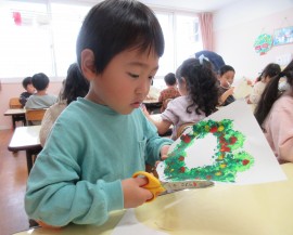 北星おおぞら認定こども園 今日のばなな組の様子🍌 2024年12月9日(月) フルーツバスケットとクリスマス制作をしました。フルーツバスケットは、自分のフルーツが言われると素早く動いていましたよ!制作では風船スタンプを楽しんで行ったり、ハサミで曲線切りにも挑戦したりと、ハサミが上手になってきたばなな組です! もどる