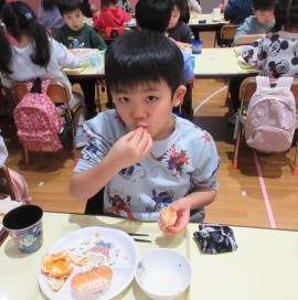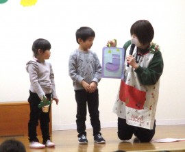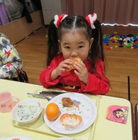 北星おおぞら認定こども園 クリスマス会 2024年12月25日(水) 今日はみんなが楽しみにしていたクリスマス会がありました☆キャンドルサービス・作品発表の後に、職員からのパネルシアター『クリスマスといえば』とシルエットクイズを楽しみましたよ☺今年もサンタさんがプレゼントを持ってきてくれ、みんなからの質問にも答えてくれました☺会食は、クロワッサン、フライドチキン、カラフルサラダ、コーンスープ、みかんでした。おやつはクリスマスケーキでした🎂 もどる