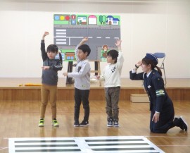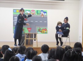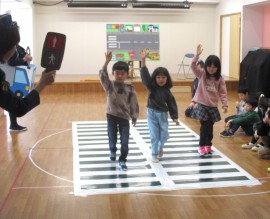 北星おおぞら認定こども園 交通安全教室(巡回) 2025年1月9日(木) 今日は交通安全教室がありました。市役所からお姉さんとななちゃんが来てくれ、道路の渡り方等を教えてくれましたよ!めろん組さんは横断歩道を渡る練習も行いました。お話をよく聞き、安全に渡ることができました✨ もどる