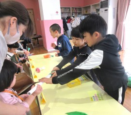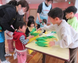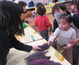 北星おおぞら認定こども園 お店屋さんごっこ 2025年1月31日(金) 今日はお店屋さんごっこがありました!お店は、ばなな組さんが八百屋さん・ぶどう組がスイーツ屋さん・めろん組さんが電気屋さんでした☆もも・みかん組さんも、好きな商品を選んで楽しみましたよ☺分園げんきのうさぎ組さんも一緒に参加し、真剣に選んで楽しんでいました☆ もどる